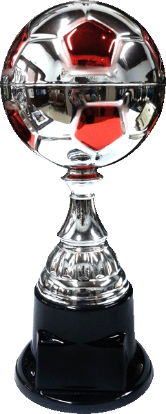 TROFEO METÁLICO FORMA DE BALÓN FUTBOL GAJOS ROJOS